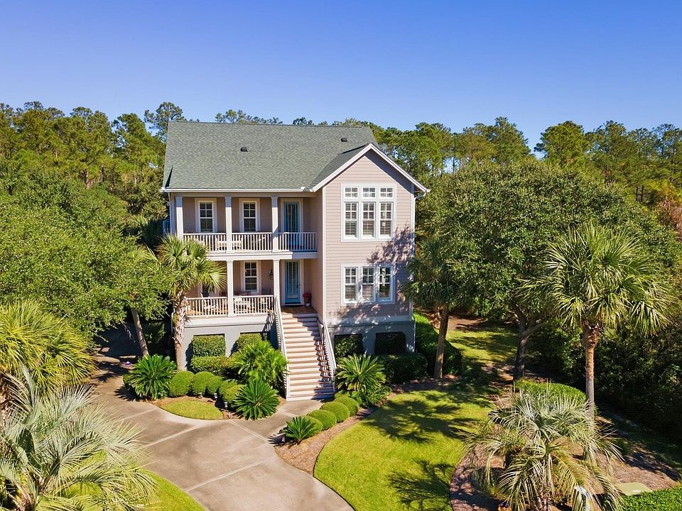 Tucked in the sought-after Ocean Oaks section of DeBordieu Colony, 77 Ballyhoo offers the perfect blend of classic Lowcountry charm and coastal convenience—just about 700 yards from the beach. Ocean Oaks owners enjoy their own private beach access along the northern board road, making every day a beach day. This raised Lowcountry home was thoughtfully designed for family gatherings and guests alike, with an inverted floor plan, an elevator to three levels, and over 4,390 heated square feet (7,467 total). The ground level features three garage bays with room for cars, golf carts, boats, and bikes, plus a large storage room, outdoor shower, and convenient elevator access. The second floor serves as the guest level, offering three spacious bedroom suites, a cozy guest den, a large laundry room, and an expansive screened porch perfect for afternoon naps in the hammock or quiet evenings under the oaks. The main (third) level is the heart of the home—an open concept living, dining, and kitchen space accented by heart of pine floors and a walk-in pantry. A charming office nook and powder room sit just off the living area. The primary suite boasts two generous walk-in closets and a comfortable bath. A second screened porch and a grilling porch overlook the scenic wooded views toward historic Arcadia Plantation, offering both privacy and beauty. The top floor includes a fifth suite complete with its own kitchenette, sitting area, and private upper deck—ideal for visiting family or extended stays. Sold furnished (with a few exclusions), this turn-key retreat is ready to enjoy immediately—just bring your suitcase and toothbrush. Whether you’re seeking a full-time home, a secondary getaway, or a investment property, 77 Ballyhoo delivers the best of DeBordieu’s coastal lifestyle.
