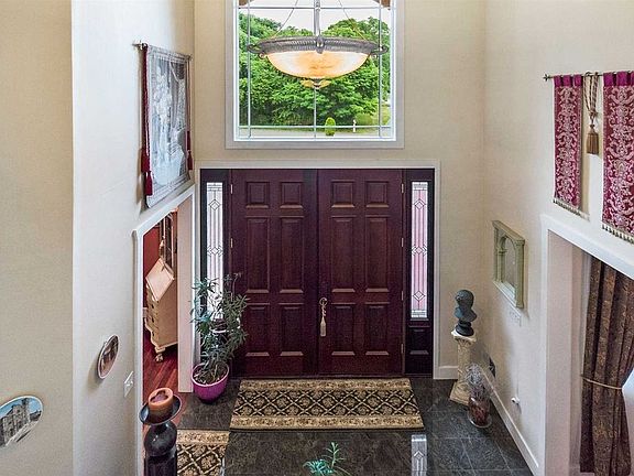 Exclusively sited in a very mature and established subdivision in Rhinebeck. The home is graced with manicured landscapes, stone retained gardens and wonderful outdoor living and entertaining space. Marble steps lead to the front entry, step inside to a soaring 18 foot foyer with marble floors and a stunning oak stair with mahogany rail leading to the second floor. The first floor offers both open and intimate gathering areas, 9 foot ceilings throughout and glistening hard wood floors. The kitchen is all Cherry Cabinets, granite tops and stainless appliances. The dining room has a tray ceiling and lots of wall space, room can easily accommodate a table for 14+. The master suite is located on the second floor with a luxurious bath laced with all marble tile, deep soaking tub and walk in shower, there is also French Doors leading to a large wraparound deck taking in all the morning sun and perfect for afternoon shade.