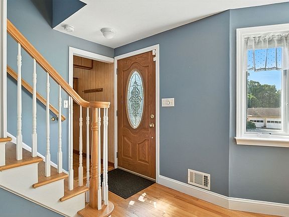 SUBMIT OFFERS by TUESDAY 8/26 by NOON. UPDATED & exceptionally cared for 3-4 BEDROOM, 2 FULL BATH VINYL-SIDED 1,600+sq.ft. CAPE is waiting for you! 2 glass doors open to a jaw dropping 15x20 CATHEDRAL BEAMED CEILING FAMILY RM featuring HWD FLOORS and a cozy PELLET STOVE. Enjoy the formal DINING ROOM with decorative molding and storage closet.  OFFICE (or 4th BR) w/HWD. LR has a BOW WINDOW, HWD FLOOR and a 2ND PELLET STOVE.  The applianced EAT-IN kitchen features oak cabinets & a door to outside deck~ideal for everyday & entertaining. The PRIVATE PRIMARY SUITE boasts HWD FLOORS, double closets, and a Juliette BALCONY overlooking the family room. 2 ADDITIONAL BEDROOMS with HWD FLOORS.  Step outside to relax or entertain on the 23.8x16 COMPOSITE DECK with a MOTORIZED Sunsetter AWNING, storage shed, & vinyl fence. UPATES include: PELLA WINDOWS (2007), FURNACE, CENTRAL AIR & CIRCUIT BREAKERS (2016+-). Tucked on a QUIET, NON-THRU STREET, with EASY ACCESS to MAJOR ROUTES!