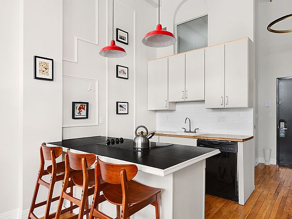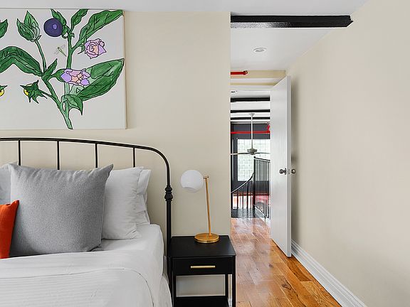 MOVE RIGHT IN! FULLY FURNISHED 2 BEDROOM DUPLEX WITH KILLER AMENITIES IN GREENPOINT. Flexible leases, with monthly rent that includes all utilities, excluding Cable TV. . This truly special, fully furnished 2bedroom duplex apartment, located in the buzzy waterfront neighborhood of Greenpoint, Brooklyn, is also the largest in the building. Upon entering, you'll be greeted by a soaring 16-foot ceiling AND a wall of oversized windows that pour light in, all day long. This spacious apartment also features hardwood floors and central air and heat. On the first level is a large open kitchen, both stylish and functional. It's fully equipped with all the conveniences that make a home, including a dishwasher, stove, fridge and kitchen island for easy entertaining. The spacious living area is ideal for entertaining or just lounging. The sofa pulls out to a full-sized bed, and the writing desk becomes your home office. A spiral staircase leads up to 2 generously sized bedrooms. There's a voluminous king-sized bed in one, and an equally inviting queen sized bed in the other. Both bedrooms are away from the living area, providing quiet and privacy. Thoughtful details throughout the apartment including closets, four (!) 42-inch HDTVs with premium cable channels, even an iron and ironing board. Refresh yourself in the spacious bathroom that features a full-size tub with shower. You can get anywhere in NYC via the delightful East River Ferry, NYC subways and Citibike sharing. A groundbreaking concept in convenient and flexible New York City living, Box House is a former door factory in Brooklyn's waterfront gem of a neighborhood, Greenpoint. A unique Brooklyn community bordering North Williamsburg and Long Island City. Greenpoint's streets teem with restaurants, bars, cafes, bakeries, boutiques, art galleries, music venues, parks, and playgrounds. Box House is fully furnished, and decked out with a panoramic communal rooftop (& tapas bar!) taking in stellar views of the East River, Manhattan and Brooklyn. Brooklyn Lantern, a full-service restaurant and bar serving new American cuisine is housed in the lobby. Its re-imagined interiors are a celebration of 21st-century Brooklyn culture and style, and the building's (and neighborhood's) industrial heritage.