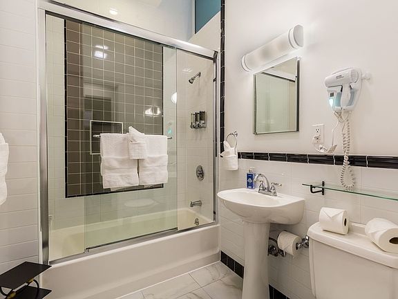 MOVE RIGHT IN! NO-FEE, FULLY FURNISHED, AMENITY-RICH STUDIO LOFT IN GREENPOINT. Flexible leases, with monthly rent that includes all utilities, high-speed internet and premium cable channels. Come home to this sweet studio loft with soaring 16-foot ceilings, central air/heat and hardwood floors, located near the buzzy waterfront neighborhood of Greenpoint, Brooklyn. This quiet apartment is flooded with eastern light and comes fully furnished with an eclectic mix of hand-picked furniture and original art commissioned from Brooklyn artists. The open kitchen is both stylish and functional. It's fully equipped with all the conveniences that make a home, including a dishwasher, stove, fridge and a kitchen island for easy entertaining. There's a queen-sized bed in a private sleeping alcove, where you can decompress or watch premium cable shows on the 42-inch HDTV. Or choose to entertain in the comfy living area on the welcoming sofa (yes, it pulls out to a full-size guest bed). Did we mention that there's a second TV in the living area? No details have been spared, the apartment even comes with smartly designed closets, and an iron and ironing board! Refresh yourself in the spacious bathroom that features a full-size tub with shower. You can get anywhere in NYC via the delightful East River Ferry, NYC subways and Citibike sharing. A groundbreaking concept in convenient and flexible New York City living, Box House is a former door factory in Brooklyn's waterfront gem of a neighborhood, Greenpoint. A unique Brooklyn community bordering North Williamsburg and Long Island City. Greenpoint's streets teem with restaurants, bars, cafes, bakeries, boutiques, art galleries, music venues, parks, and playgrounds. Box House is fully furnished, and decked out with a panoramic communal rooftop (& tapas bar!) taking in stellar views of the East River, Manhattan and Brooklyn. Brooklyn Lantern, a full-service restaurant and bar serving new American cuisine is housed in the lobby. Its re-imagined interiors are a celebration of 21st-century Brooklyn culture and style, and the building's (and neighborhood's) industrial heritage.