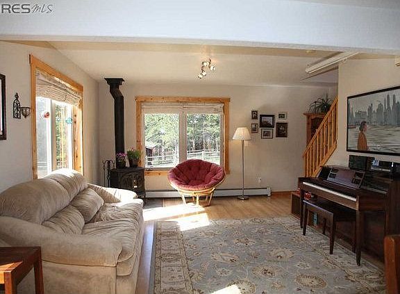 Charming newer two story bungalow style home on level lot in Overland just above Jamestown. Main floor guest bedroom and full bath, master with deck and two other bedrooms and full bath (with jacuzzi) on the second floor. Bright and sunny with lots of windows, skylights and open floor plan. All appliances and wood heating stove included as well as an invisible dog fence. Sit on the front porch and watch the wild life graze your own acre of mountain paradise.