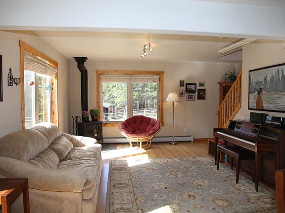 Your perfect mountain home set among tall pines and wild flowers. Wood sided home with two covered porches for sitting and enjoying nature rain, sun or snow. Main floor study and three bedrooms on the upper level with a master with its own balcony. Lots of windows for a bright and sunny living space and a wood heating stove for those cozy winter days. Easy access off Overland Road that is paved all the way to Bramer. Just a short section of gravel to the house.