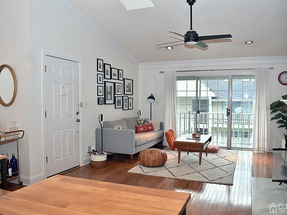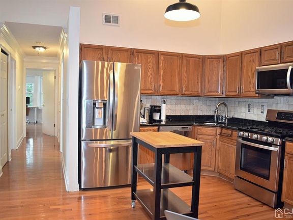Updated 3rd floor unit. Top floor offers vaulted ceiling with skylights. Very Open layout w/ hardwood floors throughout. Granite countertop w/ stainless steel appliances. Painted with neutral tone. This unit gets so much light throughout the day! Master bedroom has a huge walk in closet and updated bathroom. Hallway bathroom had been updated as well. The 2nd bedroom is spacious w/ bay window and double closet. Conveniently located near bus to NYC and few minutes drive to Jersey Av train station. Lots of shopping and dining around.