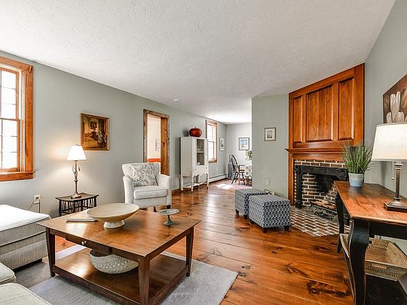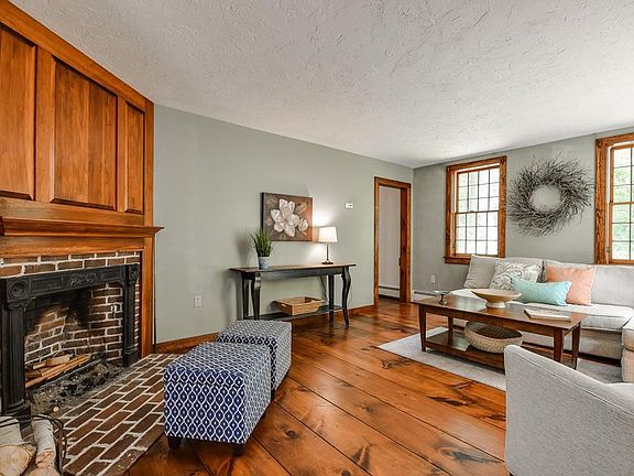 Set on quiet, woodsy Bullard Road, this reproduction Bow House style New England Cape is nestled down a long, winding drive. Privacy and nature await you on this 3 acre country retreat that abuts conservation land and a gentle stream with the soothing sound of a waterfall. A mature landscape enhances the beauty of this amazing setting. Enjoy it all from the screened porch or the adjacent deck. The open floor plan includes a large sunny kitchen which opens to a huge family room; fireplaced living room; formal dining room; and an office/BR. A laundry with cathedral ceiling, full bath with tub, and useful mudroom complete the 1st floor. Upstairs, 3 BR include a large master with 2 huge walk-in closets and en suite full bath with vaulted ceiling. The attached 2 car garage with storage above adds convenience and practicality. A trip down the private drive and into this tranquil spot in the woods will reassure even the most discerning buyer that this property truly offers something special.