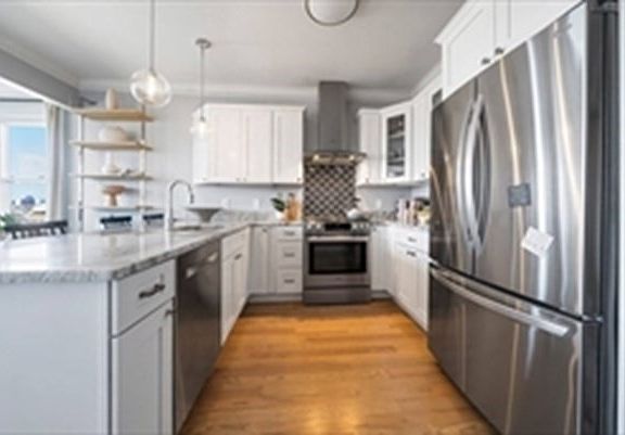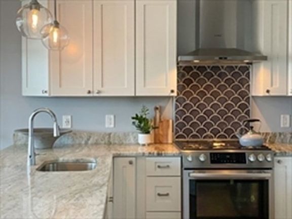 Stunning! This modern, well-designed 2-bed 1.5 bath unit is nestled in one of the most desirable areas of booming East Boston. Atop a serene tree-lined street, convenient to local amenities and within .5 mile of two T stations. Fully renovated by a talented development team in 2018, this sophisticated unit is upgraded with stainless steel Bosch appliances, high ceilings, granite countertops, custom shelving, central air, designer finishes, Nest thermostat, bathroom music speakers, and more. The open-concept gourmet kitchen overlooks a sweeping, sun-lit living room with oversized windows and breathtaking views of the skyline. The primary bedroom boasts a bay-windowed reading nook and striking built-in bookcase. Private, secure storage in basement and ample backyard space. Short distance to Constitution Beach, tennis/basketball courts, public skating, fitness/recreation centers, hip restaurants, and the Greenway. A stone’s throw from downtown.