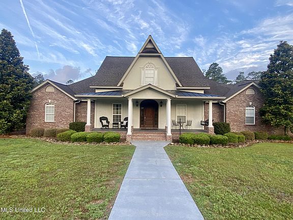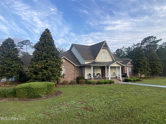 Spacious and well maintained home on 10 gated acres with lots of custom features, privacy, and extras. This home is approximately 4,900 sq ft of heated and cooled space along with 544 +/- sq ft of pool house h/c space. The home has 9-10' ceilings, 4 BR & 4 1/2 Baths. There are lots of storage spaces, crown moulding, custom blinds, power shades, 3 HVAC systems, large yard, & plenty of parking spaces. The home has three large bedrooms with private bathrooms, the main bedroom has a washer and dryer hookup in the spacious closet. The utility room is at the other end of the home. The front porch has a copper roof, and tile floor. The home was extensively remodeled in 2021. 10'' with clear pine young and groove floors are in most of. the pubic spaces of the home, all bedrooms except the main bedroom have high quality carpet that was installed in 2021. The pool had a new liner installed in April 2023. The 10 acres is located at the end of a county road and is only minutes from anything in Wiggins. The pool house is heated and cooled, has a kitchen area, a full bath, and can serve as a guest house. The property also has two shops, one is 24' x 36' with 10 eve height on slab with power, the other is 40' x 72' with 14' eve height, three roll up doors, slab, & power. there is a dog kennel area with slab and a roof. There is additional property available up to 73 acres +/-.