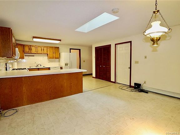 This sprawling ranch home offers endless possibilities for its next owners. Enjoy quiet evenings from your front porch. Step into a large foyer overlooking the spacious formal living room with an abundance of natural light & soaring cathedral ceilings. To the right of the foyer you will enter into an eat-in kitchen with ample storage space, including a double wide pantry & access to the garage for easy transfer of groceries Entertaining is easy with the formal dining room & family room right off the kitchen. The family room has a beautiful fireplace & sliders that open onto a wraparound deck. Enjoy the convenience of a first floor walk-in laundry room right across from the family room. A half bath & a large coat closet round out this side of the home. On the opposite side of the home there is a master bedroom with a walk-in closet, 2 double wide closets & a full bath, as well as 2 other bedrooms & another full bath. Back in the living room, the open staircase leads down to the lower level with a partially finished basement & loads of storage in the unfinished portion. This home is a perfect candidate for a rehab loan. Bring your imagination and get some easy sweat equity Roof approx 4 years old. Newer heating system (2016 & chimney liner. Garage door 2 years old. Check out Gay City State Park for swimming, hiking & biking trails. The infamous Hebron Harvest Fairgrounds are close by & access to Route 2 is just minutes away for easy commuting. Welcome home