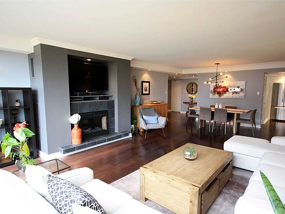 Welcome To This Immaculate Rarely Offered 2 Bedroom 2 Baths South-Facing Corner Unit. Fantastic Views Of The City. Thousands Spent In Upgrades Include New Kitchen And Bathroom. Features Include Electric Fireplace, Ensuite Bathroom, Ensuite Laundry, Large Custom W/In Closets, Pot Lights Throughout, Crown Mouldings, Stainless Steel Appliances, Separate Laundry , Remote Control Blinds. Steps To Transit, Shopping, Restaurants. Don't Miss Out On This One!