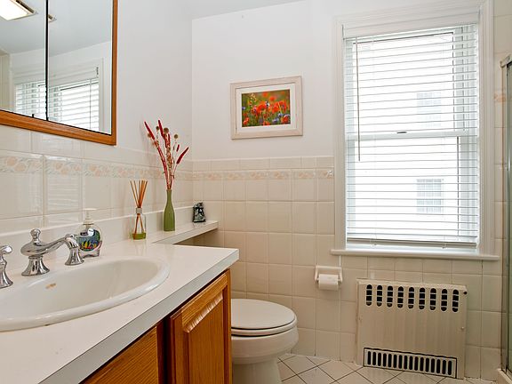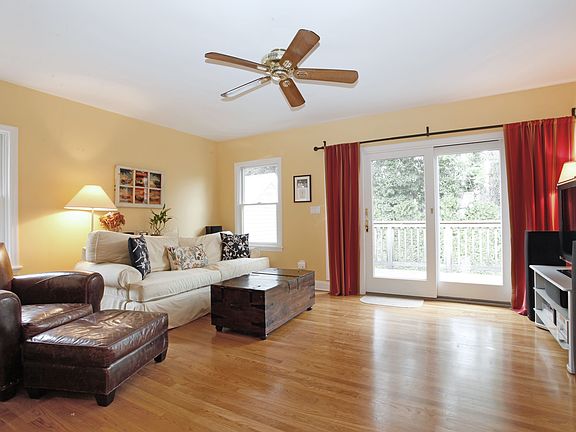 Charm abounds in this well maintained front porch Colonial situated in a tranquil setting. Perfect layout for today's modern living with large eat-in kitchen, new stainless steel appliances and adjacent family room with sliders to the deck and flat backyard. Many updates include,new bath,paint,refinished hardwood floors,new 2 car garage,new stone path,steps and front door with extensive landscaping. Short stroll to park, school, bus stop and more.