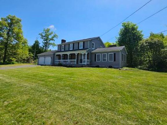 4 Bedroom 2 1/2 Bath Farmhouse Style Colonial with fabulous views . Custom woodworking and wood floors throughout, Eat-in kitchen offers custom built cabinets, center island and wood floors. Formal dining room with breakfast bar and hearth with wood pellet stove. The living room has a Beamed Cathedral Ceiling, built in entertainment center and a fireplace 2nd Floor features Main Bedroom with double closets, full bath and wood floor. 3 remaining nice sized bedrooms with wood flooring 25X30 Attached Garage. Custom built 20'X40" 2 story barn with large lean to. Finished room in the basement