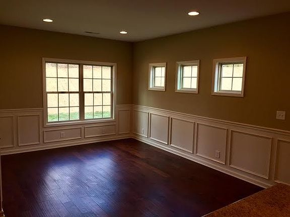 The ''Aspen Plan'' new floor plan with master on main level...open concept with kitchen and dining area opening into family room with corner fireplace. 2nd floor has 3 bedrooms each with access to baths.. and a center media/bonus room. Walk in storage room. Kitchen counter top and bath vanity tops are granite. Main level with extensive 5'' hardwood floors. Tile in the baths. Large covered ''Game Day'' patio area with fireplace and wired for