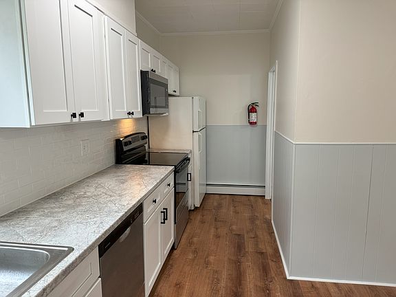 Looking for the perfect place to call home? This cozy 1-bedroom, 1-bathroom apartment offers comfort, convenience, and style in a prime location! Bright living area with large windows. Freshly painted with new cabinetry, new flooring and new stainless steel appliances. Be the first resident to enjoy the updated bathroom with new shower/tub combo, new vanity and new water-efficient toilet. Second egress exists directly outside, allowing for a refreshing breeze to fill the apartment. Electric sub panel in the unit allows for easy access. Shared coin-op laundry in the basement. Close proximity to downtown that is filled with shops, restaurants and parks. One off-street parking space, and plenty of street parking. No smoking. Maximum of two cats welcome. Renter's insurance required. Rental period is week-to-week. Lessor pays water/sewer, trash removal, lawn maintenance and common-area snow removal. Tenants pays gas, electric and cable. No smoking.