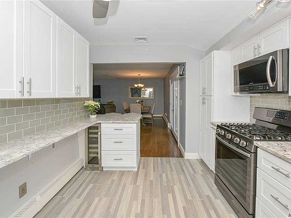 Magnificent sprawling Ranch - midblock location, expanded blacktop driveway with cobblestone border, Beautiful Stackstone front, sod with cedar impression front siding, large flat lot with white PVC fencing, beautiful back deck great for entertaining, open floor plan, hardwood floors. New kitchen with quartz countertops, white cabinets, tile backsplash, Samsong black stainless steel appliances, breakfast bar, wine fridge, lots of cabinet and counter space. French doors leading out to yard, gorgeous bathroom with tub, spacious master bedroom, first floor two bedrooms, possible second kitchen outside entrance full bath with tub, one car attached garage central AC. New garage door