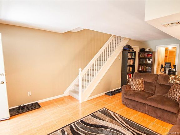 This is a lovingly cared for unit located at Cobblestone Run in a cul-de-sac condo community with a detached garage and extra parking for guests. You enter the unit on the ground level and step into a spacious great room. The laundry room, additional storage space and a sauna is also on this level. The main level has an open floor plan with kitchen, combination LR/DR with hardwood floors, a half bath, as well as doors leading out to your private back deck. The upper level offers two good sized bedrooms and a full bath with a tub/shower and double sink vanity. A nice clean condo ready to move right in. Close to shopping and restaurants with Rt 95 near by for ease of commuting. Subject to seller finding suitable housing.