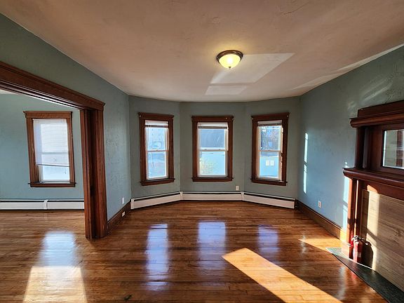 3rd Floor apt on a corner lot. Three good sized bedrooms, 1 full bathroom. Refinished hardwood floors and new laminate flooring in kitchen. Brand new stove and in unit laundry connections. Wrap around enclosed porch for 3 season space for enjoyment. Ready for a family to move right in. Owner responsible for Water, snow removal and yard maintenance. Tenant responsible for Gas + Electric. Street parking only. Year to year lease. 1 Month Security deposit required.