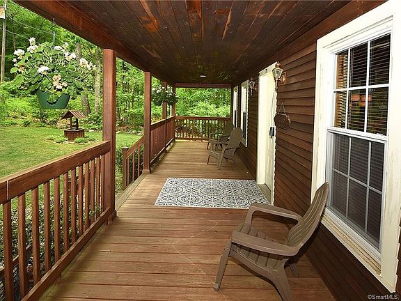 Country charmer This beautiful, well maintained home with seasonal views of Staffordville Lake has an amazing covered 8'x36' deck where you can sit and relax or have dinner, is waiting for you to call home. Step inside this two bedroom, 1.1 bath cape and get ready to fall in love with the spacious rooms, the wood floors, wood beams in the ceilings. The front to back eat-in kitchen with center island, and the show stopper floor to ceiling stone fireplace in the family room is what captures your heart as soon as you walk-in. There is a first floor office (or could be turned into a bedroom, a walk-in pantry and an updated half bath on the main level. Upstairs there are two 17'x13' bedrooms with a cathedral ceiling and a skylight. The full bath has been dormered for additional space, has a tile tub surround, and a linen closet. There is a brass hand rail, a balcony that overlooks the family room, a 13'x15' back deck plus a 12'x12' patio, lovely gardens, and an outbuilding. Wait there is more there is a 17'x7' mudroom between the 2 car garage and the kitchen. On the lower level there are 2 additional unheated rooms one is 18'x11' and the other is 15'x10. This home is within walking distance to the lake where you can enjoy fishing, swimming and activities such as the midnight paddle on the beach. Fireworks on the 4th of July can be seen from your private deck. This home has so much to offer you have to see it to appreciate it. Call today for your personal showing