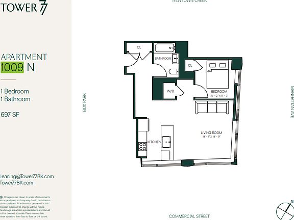 $0 Security Deposit due at signing! Open Houses weekly, I can show all buildings/units/listings (85, 77 and 87 Commercial). No broker fees/deposits by working with the building directly! Flexible move in dates! In-Unit Laundry, Central Air, Sunlit with Ample Closet Space both City and Water Views! Get them while they last! Welcome to Tower 77, where contemporary luxury meets the vibrant energy of Brooklyn's Greenpoint neighborhood. Nestled within the heart of one of Brooklyn's most sought-after locales, this iconic tower offers an unparalleled living experience. Boasting stunning architectural design and panoramic views of the Manhattan skyline and East River, Tower 77 stands as a beacon of modernity in the historic landscape of Greenpoint. With its sleek glass facade and meticulously crafted interiors, this residence sets a new standard for urban living. Step into a world of refined comfort as you enter Tower 77's thoughtfully designed apartments. Each residence features high-end finishes, expansive windows, and open-concept layouts, creating an inviting space flooded with natural light. There's a home to suit every lifestyle. Beyond the apartments, Tower 77 offers an array of amenities designed to enhance your daily life. Stay active in the state-of-the-art fitness center and yoga studios, or host gatherings in the stylish resident lounge childrens playroom, media room, co working space, or recreational area. We also boast one of the best, state of the art sauna and pool areas with spectacular terrace access to breathtaking water and city views. Conveniently located just moments away from the vibrant dining, shopping, and entertainment options of Greenpoint, Tower 77 provides residents with easy access to everything this dynamic neighborhood has to offer. With nearby transportation options including the G train and East River Ferry, Manhattan is just a short commute away.