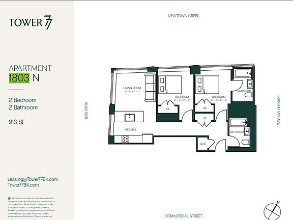 $0 Security Deposit due at signing! Open Houses weekly, I can show all buildings/units/listings (85, 77 and 87 Commercial). No broker fees/deposits by working with the building directly! Flexible move in dates! In-Unit Laundry, Central Air, Sunlit with Ample Closet Space both City and Water Views! Get them while they last! Welcome to Tower 77, where contemporary luxury meets the vibrant energy of Brooklyn's Greenpoint neighborhood. Nestled within the heart of one of Brooklyn's most sought-after locales, this iconic tower offers an unparalleled living experience. Boasting stunning architectural design and panoramic views of the Manhattan skyline and East River, Tower 77 stands as a beacon of modernity in the historic landscape of Greenpoint. With its sleek glass facade and meticulously crafted interiors, this residence sets a new standard for urban living. Step into a world of refined comfort as you enter Tower 77's thoughtfully designed apartments. Each residence features high-end finishes, expansive windows, and open-concept layouts, creating an inviting space flooded with natural light. There's a home to suit every lifestyle. Beyond the apartments, Tower 77 offers an array of amenities designed to enhance your daily life. Stay active in the state-of-the-art fitness center and yoga studios, or host gatherings in the stylish resident lounge childrens playroom, media room, co working space, or recreational area. We also boast one of the best, state of the art sauna and pool areas with spectacular terrace access to breathtaking water and city views. Conveniently located just moments away from the vibrant dining, shopping, and entertainment options of Greenpoint, Tower 77 provides residents with easy access to everything this dynamic neighborhood has to offer. With nearby transportation options including the G train and East River Ferry, Manhattan is just a short commute away.