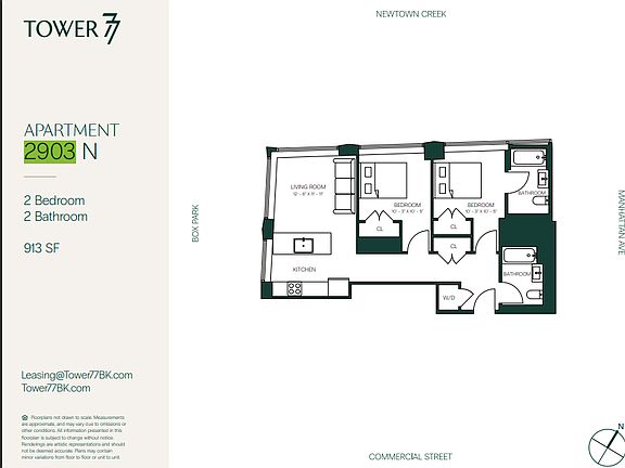 $0 Security Deposit due at signing! Open Houses weekly, I can show all the buildings/units/listings (85, 77 and 87 Commercial). No broker fees/deposits by working with the building directly! Flexible move in dates! In-Unit Laundry, Central Air, Sunlit with Ample Closet Space both City and Water Views! Get them while they last! Welcome to Tower 77, where contemporary luxury meets the vibrant energy of Brooklyn's Greenpoint neighborhood. Nestled within the heart of one of Brooklyn's most sought-after locales, this iconic tower offers an unparalleled living experience. Boasting stunning architectural design and panoramic views of the Manhattan skyline and East River, Tower 77 stands as a beacon of modernity in the historic landscape of Greenpoint. With its sleek glass facade and meticulously crafted interiors, this residence sets a new standard for urban living. Step into a world of refined comfort as you enter Tower 77's thoughtfully designed apartments. Each residence features high-end finishes, expansive windows, and open-concept layouts, creating an inviting space flooded with natural light. There's a home to suit every lifestyle. Beyond the apartments, Tower 77 offers an array of amenities designed to enhance your daily life. Stay active in the state-of-the-art fitness center and yoga studios, or host gatherings in the stylish resident lounge childrens playroom, media room, co working space, or recreational area. We also boast one of the best, state of the art sauna and pool areas with spectacular terrace access to breathtaking water and city views. Conveniently located just moments away from the vibrant dining, shopping, and entertainment options of Greenpoint, Tower 77 provides residents with easy access to everything this dynamic neighborhood has to offer. With nearby transportation options including the G train and East River Ferry, Manhattan is just a short commute away.