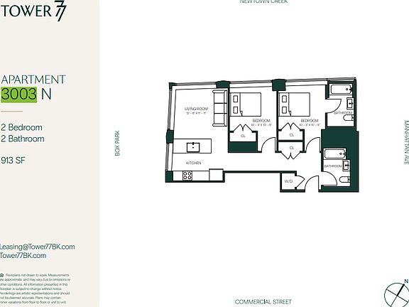 $0 Security Deposit due at signing! Open Houses weekly, I can show all the buildings/units/listings (85, 77 and 87 Commercial). No broker fees/deposits by working with the building directly! Flexible move in dates! In-Unit Laundry, Central Air, Sunlit with Ample Closet Space both City and Water Views! Get them while they last! Welcome to Tower 77, where contemporary luxury meets the vibrant energy of Brooklyn's Greenpoint neighborhood. Nestled within the heart of one of Brooklyn's most sought-after locales, this iconic tower offers an unparalleled living experience. Boasting stunning architectural design and panoramic views of the Manhattan skyline and East River, Tower 77 stands as a beacon of modernity in the historic landscape of Greenpoint. With its sleek glass facade and meticulously crafted interiors, this residence sets a new standard for urban living. Step into a world of refined comfort as you enter Tower 77's thoughtfully designed apartments. Each residence features high-end finishes, expansive windows, and open-concept layouts, creating an inviting space flooded with natural light. There's a home to suit every lifestyle. Beyond the apartments, Tower 77 offers an array of amenities designed to enhance your daily life. Stay active in the state-of-the-art fitness center and yoga studios, or host gatherings in the stylish resident lounge childrens playroom, media room, co working space, or recreational area. We also boast one of the best, state of the art sauna and pool areas with spectacular terrace access to breathtaking water and city views. Conveniently located just moments away from the vibrant dining, shopping, and entertainment options of Greenpoint, Tower 77 provides residents with easy access to everything this dynamic neighborhood has to offer. With nearby transportation options including the G train and East River Ferry, Manhattan is just a short commute away.