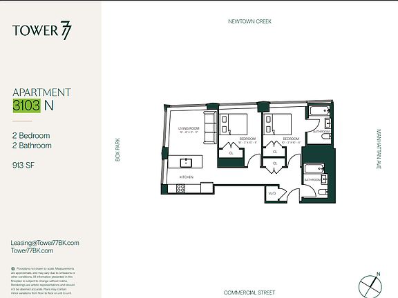 $0 Security Deposit due at signing! Open Houses weekly, I can show all the buildings/units/listings (85, 77 and 87 Commercial). No broker fees/deposits by working with the building directly! Flexible move in dates! In-Unit Laundry, Central Air, Sunlit with Ample Closet Space both City and Water Views! Get them while they last! Welcome to Tower 77, where contemporary luxury meets the vibrant energy of Brooklyn's Greenpoint neighborhood. Nestled within the heart of one of Brooklyn's most sought-after locales, this iconic tower offers an unparalleled living experience. Boasting stunning architectural design and panoramic views of the Manhattan skyline and East River, Tower 77 stands as a beacon of modernity in the historic landscape of Greenpoint. With its sleek glass facade and meticulously crafted interiors, this residence sets a new standard for urban living. Step into a world of refined comfort as you enter Tower 77's thoughtfully designed apartments. Each residence features high-end finishes, expansive windows, and open-concept layouts, creating an inviting space flooded with natural light. There's a home to suit every lifestyle. Beyond the apartments, Tower 77 offers an array of amenities designed to enhance your daily life. Stay active in the state-of-the-art fitness center and yoga studios, or host gatherings in the stylish resident lounge childrens playroom, media room, co working space, or recreational area. We also boast one of the best, state of the art sauna and pool areas with spectacular terrace access to breathtaking water and city views. Conveniently located just moments away from the vibrant dining, shopping, and entertainment options of Greenpoint, Tower 77 provides residents with easy access to everything this dynamic neighborhood has to offer. With nearby transportation options including the G train and East River Ferry, Manhattan is just a short commute away.
