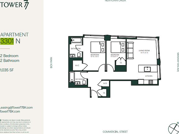 Open Houses weekly I can show all the buildings, units, and listings (85, 77, and 87 Commercial). No broker fees or deposits when working with the building directly! Flexible move-in dates! In-unit laundry, central air, sunlit with ample closet space, and both city and water views get them while they last! Welcome to Tower 77, where contemporary luxury meets the vibrant energy of Brooklyn's Greenpoint neighborhood. Nestled within the heart of one of Brooklyn's most sought-after locales, this iconic tower offers an unparalleled living experience. Boasting stunning architectural design and panoramic views of the Manhattan skyline and East River, Tower 77 stands as a beacon of modernity in the historic landscape of Greenpoint. With its sleek glass facade and meticulously crafted interiors, this residence sets a new standard for urban living. Step into a world of refined comfort as you enter Tower 77's thoughtfully designed apartments. Each residence features high-end finishes, expansive windows, and open-concept layouts, creating an inviting space flooded with natural light. There's a home to suit every lifestyle. Beyond the apartments, Tower 77 offers an array of amenities designed to enhance your daily life. Stay active in the state-of-the-art fitness center and yoga studios, or host gatherings in the stylish resident lounge, children's playroom, media room, co-working space, or recreational area. We also boast one of the best, state-of-the-art sauna and pool areas with spectacular terrace access to breathtaking water and city views. Please note that there is a five hundred dollar move-in fee and a five hundred dollar move-out fee. Pet owners are subject to a five hundred dollar annual pet fee (unless ESA/service animals) . Amenity access is optional and starts at seventy-five dollars per month, per package. There is a twenty dollar application fee per person. For added convenience, storage cages are available at four hundred dollars per month, and bike storage is fifty dollars monthly per spot. Conveniently located just moments away from the vibrant dining, shopping, and entertainment options of Greenpoint, Tower 77 provides residents with easy access to everything this dynamic neighborhood has to offer. With nearby transportation options including the G train and East River Ferry, Manhattan is just a short commute away.