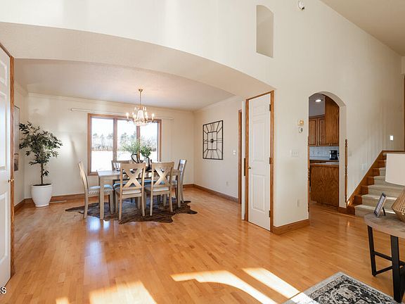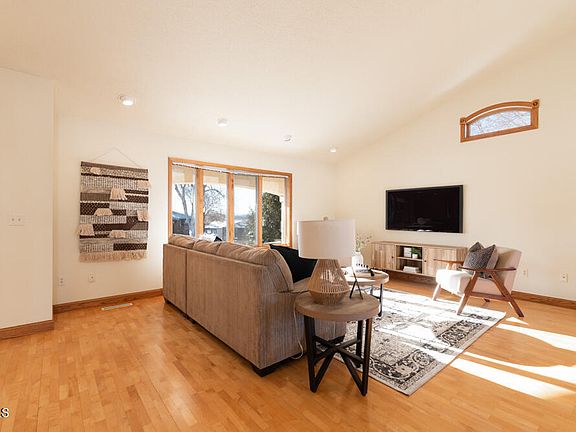 This Elegant residence offering serene living in a peaceful rural setting in the APPLE CREEK COUNTRY CLUB Development, yet conveniently located just a few miles from Bismarck. This spacious home boasts over 2,200 square feet of total living space, featuring four bedrooms,(office/den), and two bathrooms. Nestled on a quiet street, the exterior showcases appealing stucco and brick, complemented by an amazing front porch area for excellent curb appeal. The living room impresses with its expansive high ceiling, numerous windows providing abundant natural light. The semi-open floor plan seamlessly connects the kitchen, dining area, and living room. The kitchen is equipped with oak cabinets and plenty of counter-top space, as well as a breakfast area, while the dining room offers access to the kitchen, perfect for entertaining! The primary bedroom features large closets, and access to the 3rd bedroom/den, for added convenience for a nursery or an office, there is a common area hallway bathroom with a soaking tub. The spacious garage accommodates 3+ vehicles or allows for the creation of a workshop area. Whether you are transitioning from a larger rural property and seeking proximity to the city without compromising tranquility, envisioning easy access to an 18-hole PRIVATE GOLF COURSE, clubhouse bar, restaurant, and swimming pool just a golf cart ride away, or simply desiring a beautiful neighborhood with ample open space, don't hesitate to schedule a showing of this remarkable property today! Optional golf and social/pool memberships are available for those interested. Buyer to verify all details.