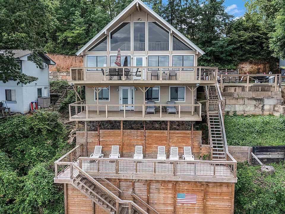 Enjoy this renovated Eastport gem, complete with 3 bedrooms and 3 full bathrooms. Located waterfront on a peaceful section of Bear Creek, this house is just steps from the newly renovated marina. With a bedroom and bathroom on each of the 3 floors, this home is ideal for hosting or rental potential (currently cash flowing). Private double covered double boat dock, 3 stories of deck space, and sweeping lake views, this is one of the best setups on the lake.
