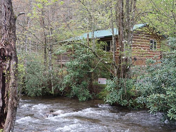 Charming 2 Bedroom 1 Bath Cabin on Rushing Alarka Creek. Currently on a Successful Rental Program Grossing Over $26K Per Year. Investors better move quick! Dove Tail Chink Log Cabin has all the Charm it needs with the Bold Rushing Creek Just Feet from The coved Deck with a Jacuzzi. The Creek is a Stocked Creek several times a year with lots of trout. Just about 15 minutes from Downtown Bryson City and all Outdoor amenities such as Hiking, Biking, Whitewater rafting and so much more. Just take a look at the photos of this fantastic Cabin, this one won't last long. ( same style cabin next door is for sale as well with the same owner for those that want two cabins!)