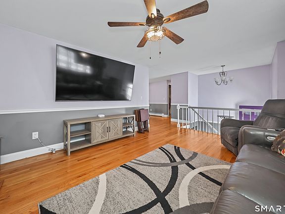 Welcome to this well-maintained three-bedroom raised ranch located in a desirable Southington neighborhood. Set on a level, fully fenced yard, this home offers the perfect blend of space, functionality, and comfort. The main level features hardwood floors throughout, a bright living area with a wood-burning fireplace, and a dining room with French doors leading to a sun-filled four-season sunroom-an ideal spot to relax and enjoy natural light year-round. The kitchen is finished with granite countertops and newer tile flooring, while ceiling fans throughout the home add comfort in every season. The primary bedroom includes its own half bath, with an additional full bath on the main level. The fully finished lower level expands the living space with a second wood-burning fireplace, a kitchen, half bath, and laundry room, offering excellent in-law or multi-generational living potential. Outside, enjoy two decks-one off the main house and another behind the oversized two-car detached garage-perfect for entertaining. The backyard also features a fire pit, creating a great outdoor gathering space. Additional highlights include solar panels, ample storage, and a location within walking distance to parks and schools, with easy access to restaurants, shopping, and major highways. This home checks all the boxes for space, flexibility, and location-don't miss it.