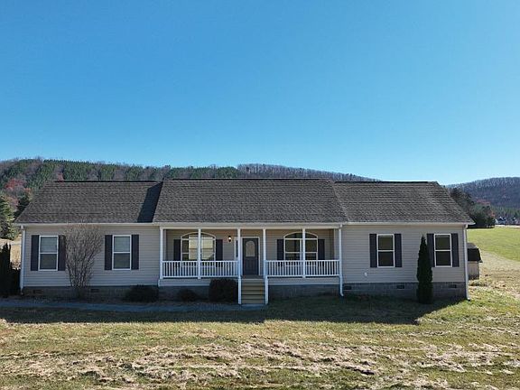 Rare opportunity to own nearly 4 acres with gorgeous mountain views. You will love morning coffee on the rocking chair front porch watching the deer grazing. Recently updated, including all new appliances, and ready to move in. The large kitchen and open floorplan provides the perfect place to entertain and enjoy. This home also offers 3 bedrooms, 2 bathrooms, a dedicated office space with glass doors, laundry room off kitchen, master bath with freestanding tub and lots of storage, two oversized garage bays, concrete drive and walkways. Located just 15 minutes from Liberty University and 5 minutes from downtown Rustburg.