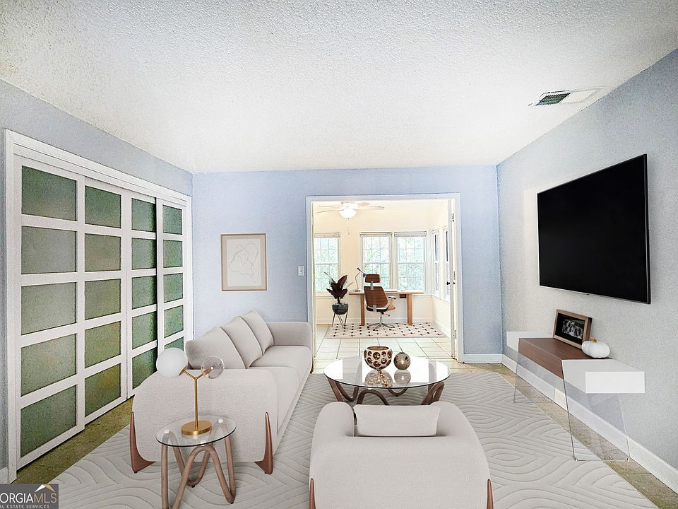 MUST SEE! This spacious one bedroom has MANY RECENT UPDATES. Live in Cross Creek's unique and sought after gated community with unsurpassed amenities. Cross Creek is on 122 acres of mature greenspace and in the heart of Atlanta. It's tucked away in the luxury Buckhead community. You'll have everything at your fingertips. This cheery and private lower level has only a few steps to enter, has a great open plan, and no carpet-LVP or tile flooring throughout. ENJOY NEW ENERGY EFFICIENT WINDOWS, replaced electrical panel, replaced HVAC, hot water heater 1 year old, and new roof. The condo flows beautifully with a large family room which has a huge recently added wall of closets with lovely decorative wainscoting sliding doors. This storage area is a rare find. From the family room's French doors there's a wonderful sunroom/bonus room-you choose-den/office, etc. The sunroom overlooks a peaceful wooded area. There's a generous formal dining room and galley kitchen with wood cabinets and replaced appliances. The large bedroom with ceiling fan has nice windows overlooking a wooded area and a huge walkthrough closet. The tiled bath is a lovely "TOTAL RENOVATION" with separate vanity area. Enjoy NEW: white wood cabinetry/sink/faucet/lighting/medicine cabinet/low flow toilet/and huge tiled walk-in shower. There's an added barn style sliding door in the hall. Washer/Dryer remain. A NEST thermostat has been added along with new door lock with code entry access. De Arc Place is a desirable street in Cross Creek and near all amenities. CROSS CREEK'S UNSURPASSED AMENITIES INCLUDE: 24/7 staffed gate, 18 hole par 3 golf course, 3 pools (main pool has a lifeguard in summer and 2 saltwater satellite pools), 3 clubhouses (main clubhouse and 2 renovated satellite clubhouses), restaurant/bar with desirable outside seating, pickleball, tennis, pro-shop with recreation manager, management office, gym, lake, parks, guest suite for resident guests, and EV charging stations throughout the community, CROSS CREEK is a "Certified Wildlife Habitat by the National Wildlife Federation." THIS COMMUNITY IS TRULY A "HIDDEN JEWEL" in Atlanta.