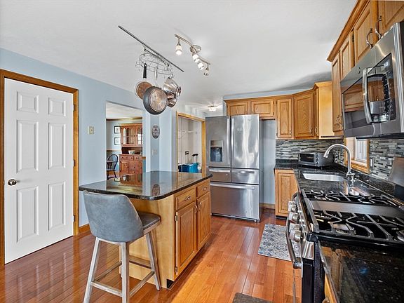 Marvelous one-owner, move-in ready home boasts spectacular hard wood floors that add warmth to the welcoming, open floor plan. Enter the great room that combines living/family room space & breakfast nook area adjacent to kitchen. Deck is conveniently located near the kitchen to make grilling easy & accessible. Laundry is functionally included on main floor right off the elegant kitchen with garbage disposal, granite counters, stainless appliances, matching back splash as well as island with seating. The kitchen boasts plenty of storage space in generously sized pantry and don’t forget the bonus room to build a den, office, play room, or anything you envision. The dining room immediately off the kitchen rounds out the main floor. Upstairs find the large master en suite complete with walk-in closet, 2 other bedrooms & walk-up attic. Walk-out basement is your template for extra living space, already plumbed for a possible extra bathroom. All you need to do is move in.