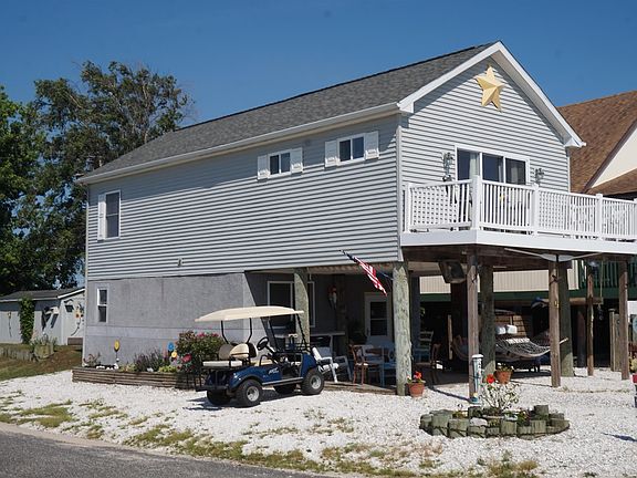 Welcome to 77 Delaware Avenue located in the quaint, fishing, boating & bayside community of Fortescue. Access to a public marina with boat ramp, restaurants, gift shops, beaches, abundant wildlife, & magnificent sunsets over the Delaware Bay! Situated on corner lot with maintenance-free exterior. There’s plenty of parking for all your vehicles including your golf cart on the crushed shells drive which completes the “coastal vibe”. This single-family elevated home with 2 bedrooms, 2.5 baths, shows pride of ownership. Features 2”x6” walls, an open concept living area with plenty of natural light, large eat-in kitchen with wood cabinetry, a center island, vaulted ceilings and a 9' sliding door to the deck with unobstructed bay views! Bamboo flooring throughout, plenty of closet space, a separate laundry room and a comfortable second bedroom for your guests. The primary bedroom has its own full bath with a large garden tub/shower combo. On the “Down Under” (inside lower level) you’ll find an additional 800+ sq ft of vibrant party space! Including a built-in bar, powder room, workshop, with a pellet stove for year round fun! The ground level exterior deck has a large covered area for relaxing and entertaining. There is also an oversized shed for storing your kayaks, bikes, fishing gear, and beach chairs. This is a must see home, perfect for year round living or a vacation getaway!