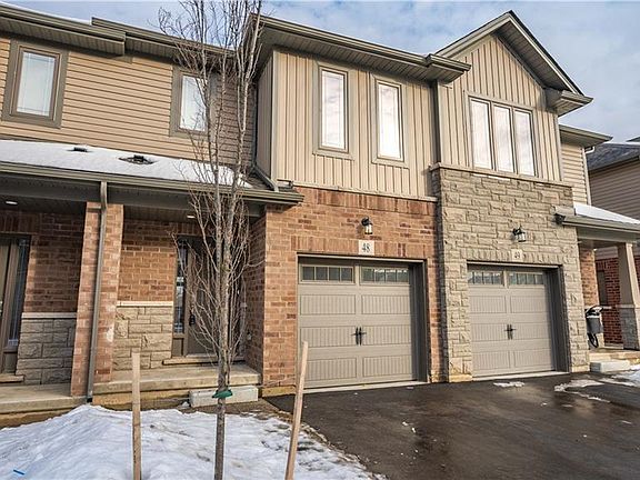 Welcome home to 48-77 Diana Avenue located in the highly desirable West Brant in Brantford, Ontario. This is a quickly growing community located in close proximity to many amenities including walking/biking trails, shopping plazas and restaurants. This 3 bedroom, 2.5 bathroom home is located in a quiet community and overlooks a large forest from the rear patio. Walking into the main level is a powder room near the front, as you make your way into the home, you are greeted by an inviting open concept floor plan that provides plenty of natural lighting through the very large windows at the back of the home. The kitchen features white cabinetry and a large island that can easily accommodate 3-4 high-top chairs. The upper level features a large primary bedroom with a walk in closet and en-suite. The ensuite features dark cabinetry, a double-vanity, and a large walk in shower. Also located on the upper level are two bedrooms and a full bathroom with a bathtub. The lower level of this home is unfinished but offers an abundance of space for you to finish and set up exactly the way you like! The basement features a walk out basement and offers 8 foot patio door and full size window that provides plenty of natural daylight. If you've been looking for a home that has been well cared for, is less than 1 years old, then you won't want to miss this one! There is still 6 years left of the Tarion builders warranty.