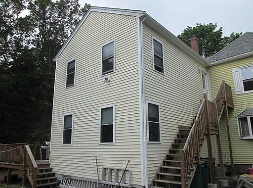 Unique, oversized 2-family within easy walking distance to train. Excellent opportunity for owner-occupant. Townhouse style unit has mudroom entry with picture window, newer cherry cabinet country kitchen with pantry that is open to eating area with pellet stove. Spacious living room with picture window. Four bedrooms, two on first floor and two on second floor. Three full baths. Laundry in unit. Access to full basement. Second floor unit has eat-in kitchen, living room, two bedrooms, one full bath, laundry in unit and access to walk-up attic. Lots of space in side yard with above-ground pool, play set, and storage shed. Mansfield water and sewer. Don't let this opportunity pass you by.