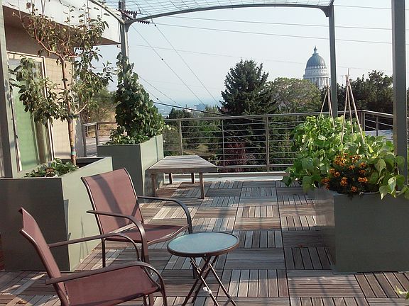 One-of-kind contemporary in Capitol Hill. Beautiful views, wonderful setting, lots of light. Rooftop oasis with planters, trellises, custom railings. Spacious gourmet kitchen. Major rebuild in 2009, stripped to studs. Exceptional, unique craftsmanship. Fun and relaxing Japanese Ofuro soaking tub. Steam shower. Newer high-load membrane roof, insulation. Ceiling fans, bamboo flooring, ceramic tile. Corner home. Second kitchen downstairs, great for visitors, family, entertaining. And, once again, wonderful views.