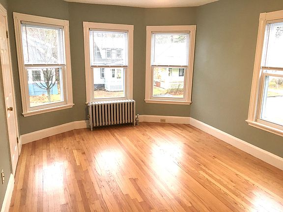 Located in a great friendly neighborhood on a corner lot. Close to schools, shopping, hospitals, bus line, restaurants, fitness and recreation. Freshly painted rooms. Refinished oak and wide pine floors. This building is a two family. This unit is a sunny three bedroom apartment which is located on the second and third floor, 1 bedroom on the second floor and 2 bedrooms on the 3rd. Third floor bedrooms could be used as home offices. Bathroom has tile floor with new vanity, faucet and lights. Excellent front balcony to relax, people watch and enjoy the outdoors. New kitchen cabinets, faucet, oversized stainless sink, granite counter, fire doors and maple flooring. Newly paved walkways and driveway, parking for 3 vehicles. Heat and water included. Tenant pays for electricity, hot water, cable and internet.