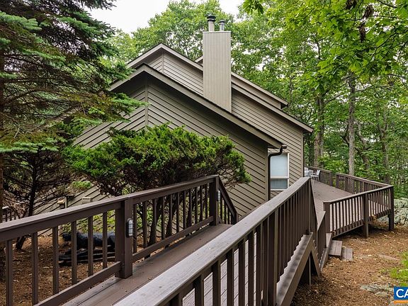 This lovely 4 bedroom home rests on Elm Drive, a quiet culdesac atop Devils Knob, in the highest portion of Wintergreen Resort. The floorplan is flowing and offers 4 separate master suites. Two of these suites are on the first floor, each with their own private bathroom, and are at opposite ends of the home for excellent privacy among the occupants. These two suites also offer direct access onto the decks. The remaining master suites are upstairs, each with their own bath as well. Other desirable features include: a paved driveway which forks in front of the house and easily accommodates parking for 5-7 vehicles ...a covered front porch provides drama-free entry on rainy or snowy days ...a covered screen porch to enjoy in inclement weather ...gracious decks with plenty of space for large gatherings ...a walkway which connects to an enormous native rock outcropping. The property backs up to the George Washington Nation Forest and the Appalachian Trail. Serene, peaceful, quiet and charming. An opportunity not to be missed!