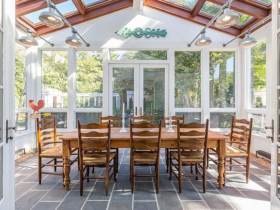 Welcome to this picturesque New England home set on Ricketson's Point in Padanaram Village. The area, known by locals as a place "where life slows down", offers local charm with enchanting views year-round. Elegant details throughout the home exude a refined yet comfortable finish. Enter through an airy foyer featuring high ceilings, an alluring staircase and soothing radiant heat under the inviting bluestone floor. The high ceilings extend into the warm living room, which boasts hardwood floors and twin fireplaces on either side of the room. French doors open to the screened porch, gardens, and loggia, amplifying the authentic European country home style. The chef's kitchen, full of natural light, boasts a massive island and neighbors the garden room, ideal for dining and relishing the views of the gardens. With 4 bedrooms and 4.5 baths, this home is great for entertaining. Take advantage of the short walk to the private beach or shops and restaurants that bring the village to life.