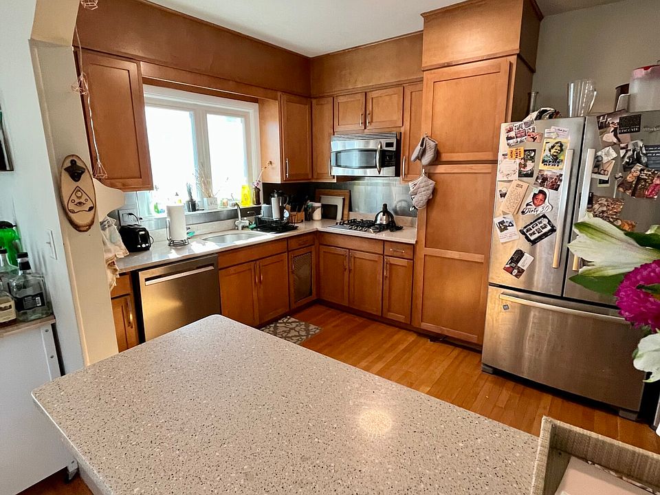 Spacious and updated 4 bed 2 bath duplex Apartment is available for Sept 1st, 2025 move-in 4100/month 3 parking spots included (1 in detached garage) This is a two-floor apartment which has been renovated and offers a spacious layout. The kitchen is upgraded with stainless steel appliances and granite countertops. Both bathrooms have also been updated. There is a full size washer and dryer in the upstairs bathroom plus hardwood floors throughout the whole apartment. Huge shared backyard. Parking: 2 garage parking spots plus at least 1 additional outdoor space included in rent! WOW! 4th parking spot may be available if needed Great location for professionals as the apartment is close to many MBTA options to Fenway, Back Bay & south station and plus convenient access to Brookline, Longwood Medical Area, Harvard and Cambridge Call/text to see this apartment! Sorry, cats only 1st month, last month, $400 cleaning deposit and 1 month broker fee