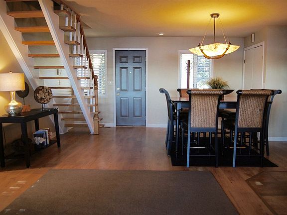Over 90 ft of Tippy Lake water frontage and breathtaking sunrises from nearly every room in this home. Featuring a welcoming and spacious dining area open to the updated kitchen with grand island allowing for great entertaining! Ample cabinetry and counter space with upgraded stainless appliances. Overlooks the nearby breakfast area and living room with stunning views of the backyard and beautiful lake. Split bedroom floor plan with main level master suite with open seating area and private office overlooking the lake. Additional family room with loft for extra sleeping quarters and full bath are located on the main level also. Upper level full bath and two additional bedrooms allow for a comfortable summer or year round home. Additional amenities include central vac, laminate flooring, granite counter tops, attached oversized garage, asphalt parking for guests, mosquito misting system, lakeside deck with concrete walkway to the waters edge and pier.