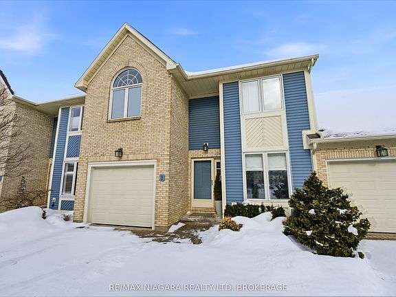 Welcome to Erion Village Estates, one of St. Catharines' most sought-after communities. This executive two-storey condo offers over 2140 sq. ft. of above-ground living space plus a fully finished basement and backs onto peaceful and scenic greenspace, providing a private, fully fenced nature rich setting to enjoy from the rear deck and multiple rear picture windows. Inside, the main floor features engineered hardwood (2020) and a bright, functional layout. The living room is warm and inviting with its gas fireplace and walkout to the deck, while the adjoining dining room showcases a charming bay window and French doors-ideal for formal meals, a home office, or a quiet retreat. The eat in kitchen offers generous counter space and unique stained glass accents. Upstairs, you'll find three well sized bedrooms and an updated 3 piece bathroom with heated floors (2020). The spacious primary suite includes a large walk in closet and a private ensuite complete with jetted tub, separate shower, and a newer vanity. Laundry has been conveniently relocated to this level but can easily be moved back if preferred. The recently finished basement (2020) adds even more versatility, featuring an impressive 8 foot dazzling electric fireplace, a 2 piece bathroom, and an additional office/bedroom. With soundproof insulation throughout, it's an excellent space for movie nights, hosting friends, or watching the big game or a new movie. Notable upgrades include: furnace/AC with humidifier and air purifier (2021), blown in attic insulation and extra insulation above the garage, ceiling fans, stainless steel appliances, and an automatic garage door opener. Located close to schools, shopping, highway access, and the hospital, this home blends comfort, convenience, and quality updates throughout with a truly prestigious address.