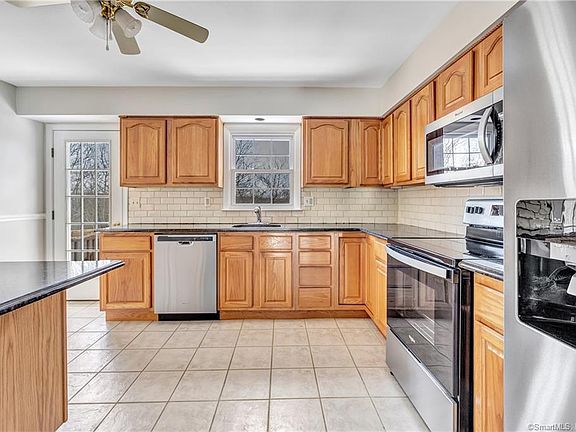 Spacious Raised Ranch home nestled on over 2 acres. This home has great potential for working from home, running a home-based business or In-Law apartment for extended family. The main level has hardwood flooring thru-out, a large bright living room open to dining room. The eat-in kitchen has all new Stainless-Steel appliances, island with seating, granite counter tops, tile backsplash and flooring. Three generously sized bedrooms, master with double closets and Jack & Jill full bath. The lower level has a recreational/playroom with fireplace, cabinetry, tile flooring and slider to huge two-tier deck. Family room, bedroom and two offices all with w/w carpeting. Large breezeway that leads to an oversized two car garage.***Highest and Best 1/26/22 by 12 noon***