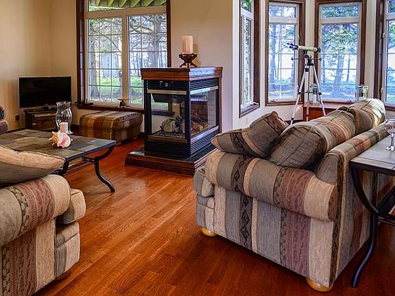 Seaside living without shared spaces of condo, townhouse and apartment complexes. 3rd bedroom is possible. Breathtaking year round home with panoramic views from every level of this custom-designed home with close to 275 feet of private ocean frontage on the warm waters of the Northumberland Straight. Imagine yourself sipping coffee and listening to the crashing waves from the deck of this thoughtfully laid out home. This modern and stylish home features views of the ocean from every room with floor to ceiling windows, atrium, a guest patio and private balcony off the master bedroom. The open concept main floor with its high end kitchen is a chef's dream and is perfect for entertaining family and friends. The upstairs features two good size bedrooms and a sitting parlor with the ability to close in making for three bedrooms up. The front of this home overlooks a picturesque pond, a private vineyard, ornamental and fruit trees. Close by are two world class golf courses, a marina and the delightful seaside villages with lively Saturday farmers markets, breweries and vineyards.
