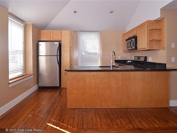 Appealing 3rd floor condo with an open floor concept. Central spiral staircase leads to a private rooftop deck with panoramic views of Newport and the Claiborne Pell Bridge! The living room and kitchen feature cathedral ceilings and there are hardwood floors throughout the unit. Kitchen is equipped with stainless steel appliances and granite counter tops. The staircase to enter the unit is newly carpeted and wide for an easy move-in. Some other perks: entire unit has been freshly painted, central air, gas utility source, and laundry in-unit!
