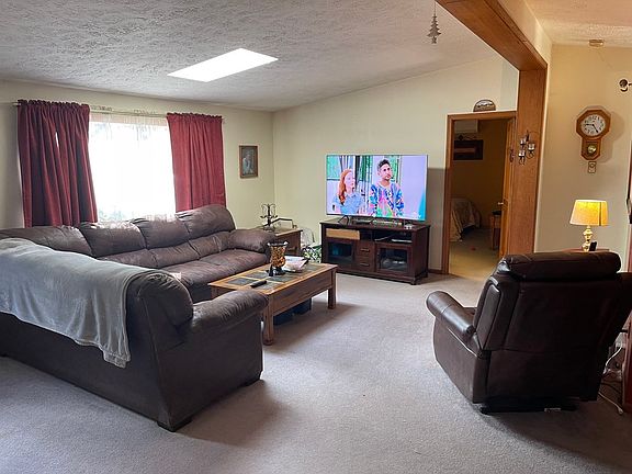 Three bedrooms, 2 full bath, large living room and dining room connected. Living room, dining room and all bedrooms fully carpeted. Large unfinished basement, washer and dryer connection in basement, also a coal furnace located in the basement. Wooden deck and hot tub off the back of the home. Large backyard.