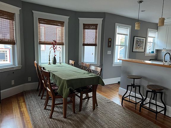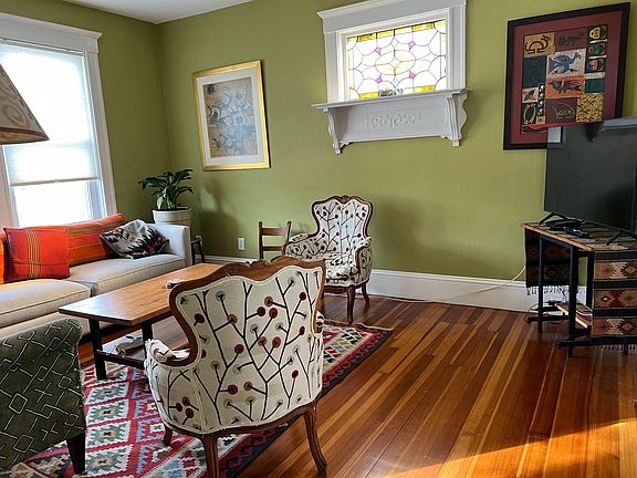 Four or more-month rental period discounted Renovated, tastefully furnished and fully equipped three-bedroom apartment on quiet friendly street near Mass Ave, walking distance to two grocery stores and many restaurants, Arlington Center, Monotony Park, and the bike path. Easy access to Route 2 and major highways. Top two floors of two-family home. Off street tandem parking for two cars. Open kitchen and dining room with bar counter, stainless steel appliances, large sunny master suite on second floor with walk-in closet, two tiled baths (one with deep soak tub/shower and the other with walk-in shower), washer and dryer in unit, front and back porches with shared yard- Available February 1. No fee. Rent a bit negotiable for more than 3-month rental period. Fully furnished. All utilies included. Minimum rental period 3 months.