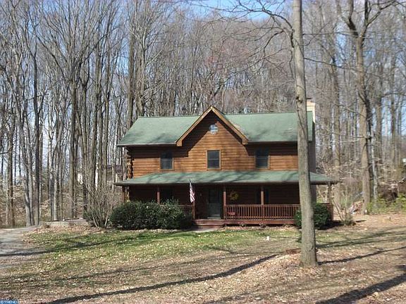 A beautiful log home near the White Clay Creek is perfect for any season! At the end of a long driveway is this awesome, very solid home that was built by Kuhn Brothers with all hardwood floors and walls. As you approach the house, it appears to be framed by a wraparound porch. The porch leads to the tiled foyer that opens to the living room and dining room. Adjoining the living room is the cozy family room with its stone wood burning fireplace and sliders leading to a large deck for summertime relaxing. The flow of this home makes it ideal for entertaining. A powder room and laundry room are also on the first floor. Upstairs are four bedrooms, the master bath with its jetted tub and skylights and the huge hallway bath. The spacious finished basement has space for a media room. This home's location is convenient to Newark and Wilmington, Delaware, and Aberdeen, Maryland, as well as being halfway between Philadelphia and Baltimore.
